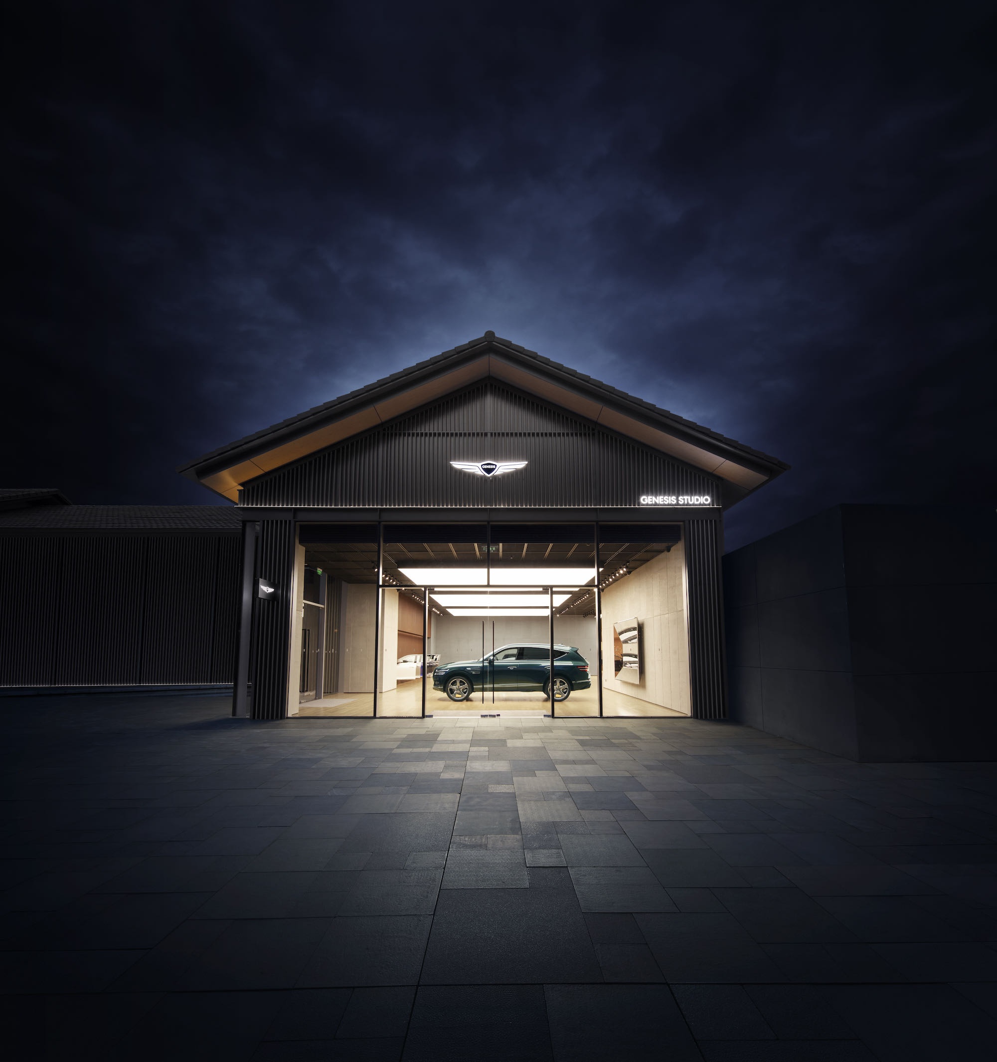 成都捷尼赛思之家的空间设计将工业风、艺术与自然融为一体,充分展现了由反差衍生的平衡之美,与周边自然环境完美共鸣。其外观保留了以遍布该地区的古寺为灵感的传统中式坡屋顶,与繁华的商区交相辉映。内饰选用耐候钢,最大化地保留原材料固有的天然属性。其铁锈色调随着时间更迭自然变化,象征着捷尼赛思随着时间的沉淀而历久弥新。混凝土裸墙营造出极简轻工业风,鲜明的对比凸显出捷尼赛思车型的精湛工艺。与天然材料和谐相融的现代化LED墙,则展示了捷尼赛思充满魅力的品牌故事。