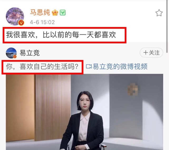 前不久,马思纯也被拍到了疑似新恋情的画面,男方疑似盘尼西林乐队的主唱张哲轩,由于男方过去的故事并不优秀,所以有很多网友也不看好这段感情,纷纷劝马思纯赶紧分手,但是她本人依旧是我行我素,甚至还疑似发文作出了回怼“我很喜欢自己的生活,比以前的每一天都喜欢”。